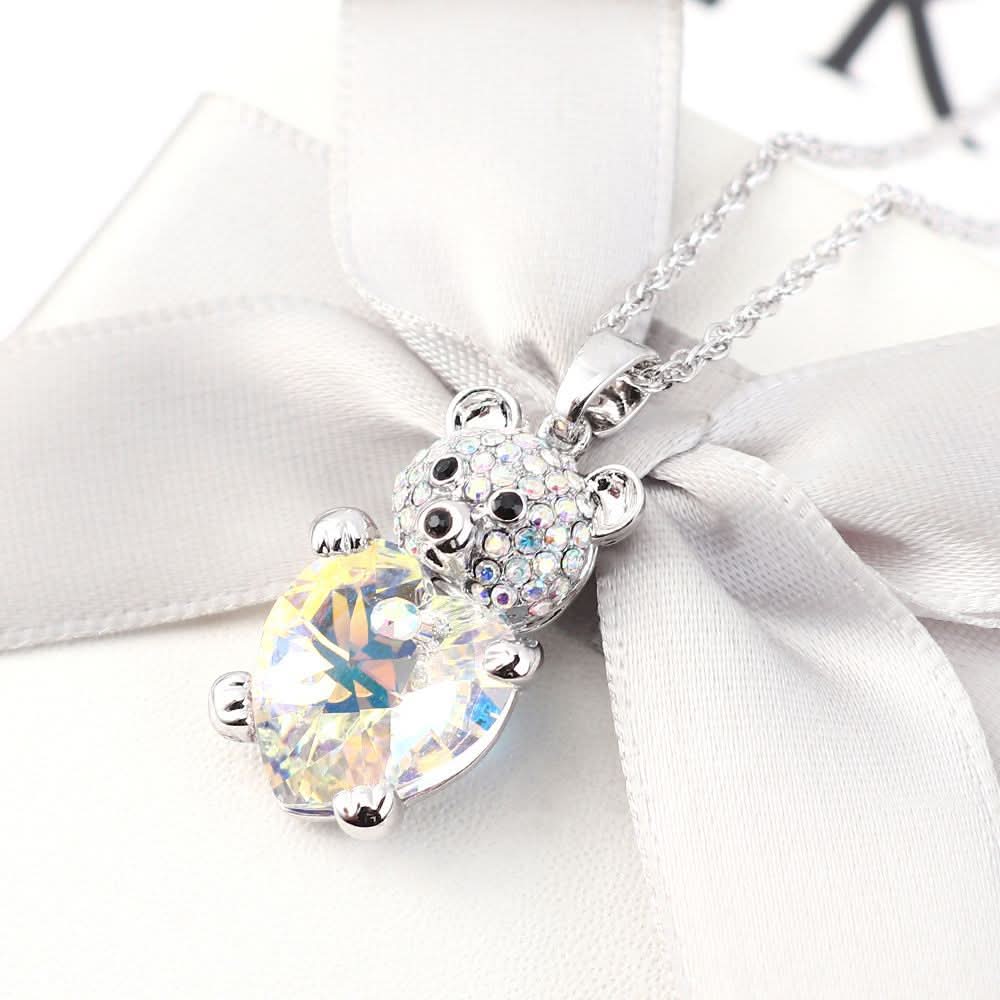 Bear Crystal Heart Necklace