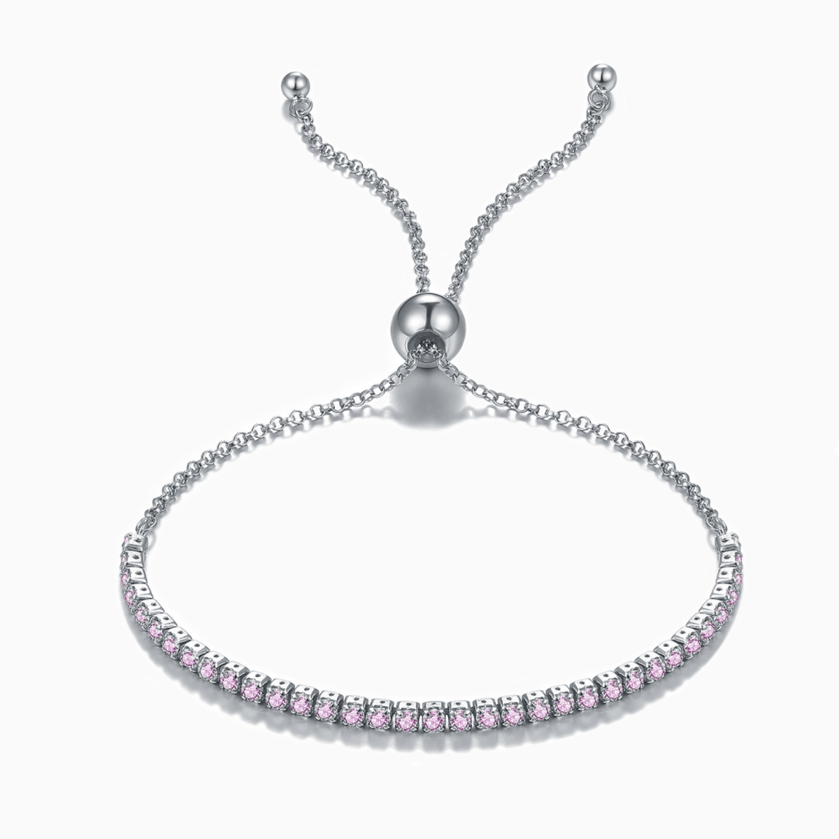 The tennis bracelet is a perennial favorite among fashion jewelry circles. Our Dazzling Pink Stones Tennis Slider Bracelet is a fabulous choice for everyday wear. Crafted in 925 sterling silver and highlighted by sparkling cz diamonds, you are certain to draw attention when wearing this bracelet! If you would like to get the same bracelet in silver, gold or champagne gold, click here!