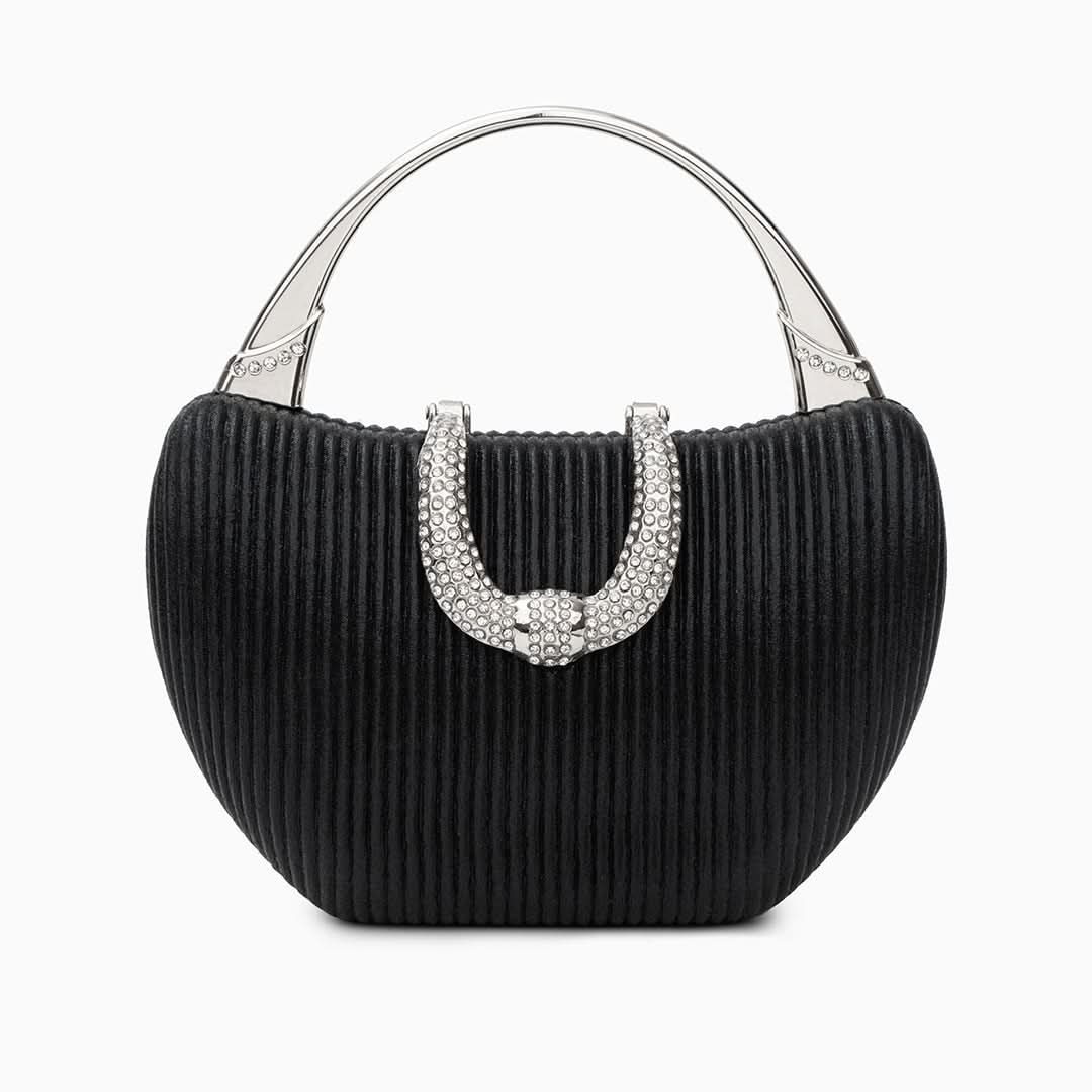 Get your hands on our Fancy Metallic Evening Handbag. It features a smooth metallic outer exterior with an elegant diamond buckle and a sturdy metal handle. It can be worn throughout the day, taking you effortlessly into the evening.
