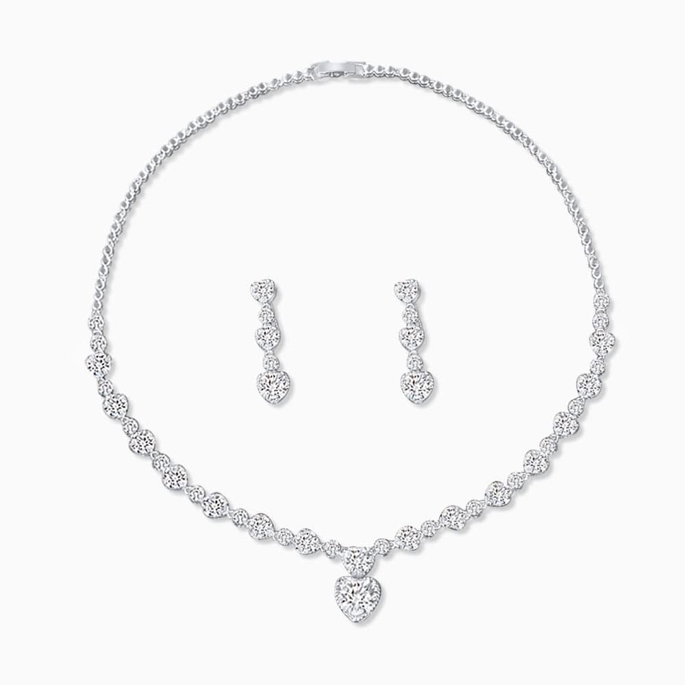 Let the heart shine brightly with this Glistening Gemstone Hearts Jewelry Set. Features a matching set of a necklace and pair of earrings that sparkle like the stars in the sky. Exclusively available in silver.