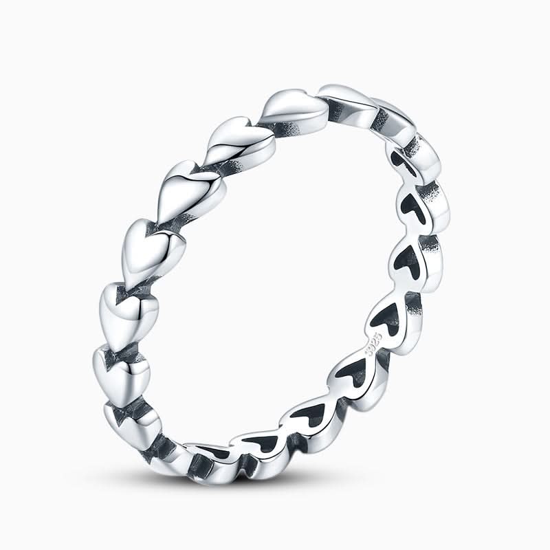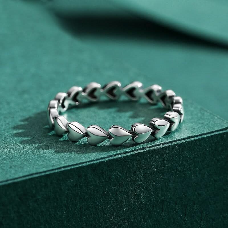 This beautiful 925 sterling silver sparkler is a classic in the making. It features a chain of intricately crafted hearts as a band. Emanating a beautiful elegance all on its own.