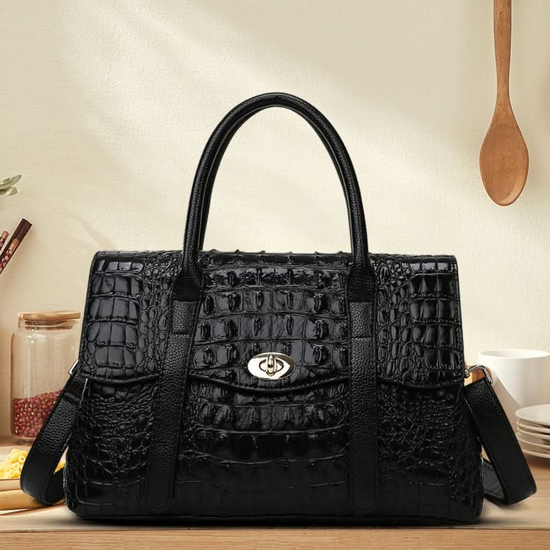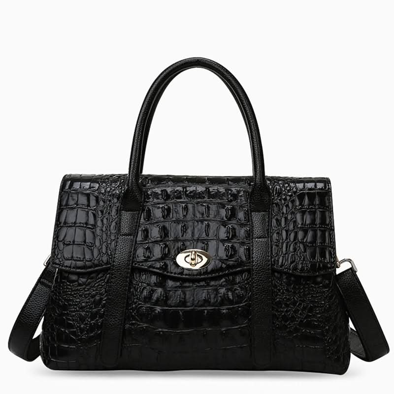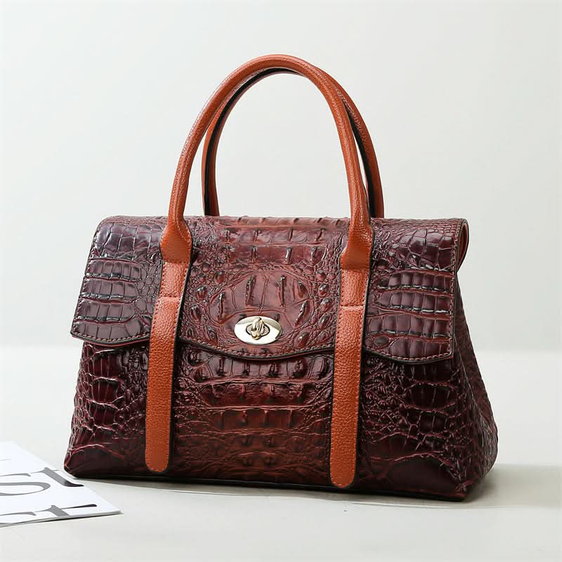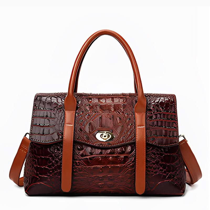 The Leocadia Crocodile Pattern Medium Tote Bag is an elegant and functional bag that will last you for life. It's made of high-quality materials and has a lovely crocodile texture that makes it stand out. This bag has a sleek design with enough storage and is comfortable to carry. Now available in black and brown.