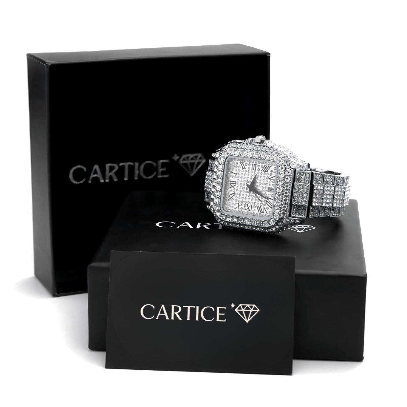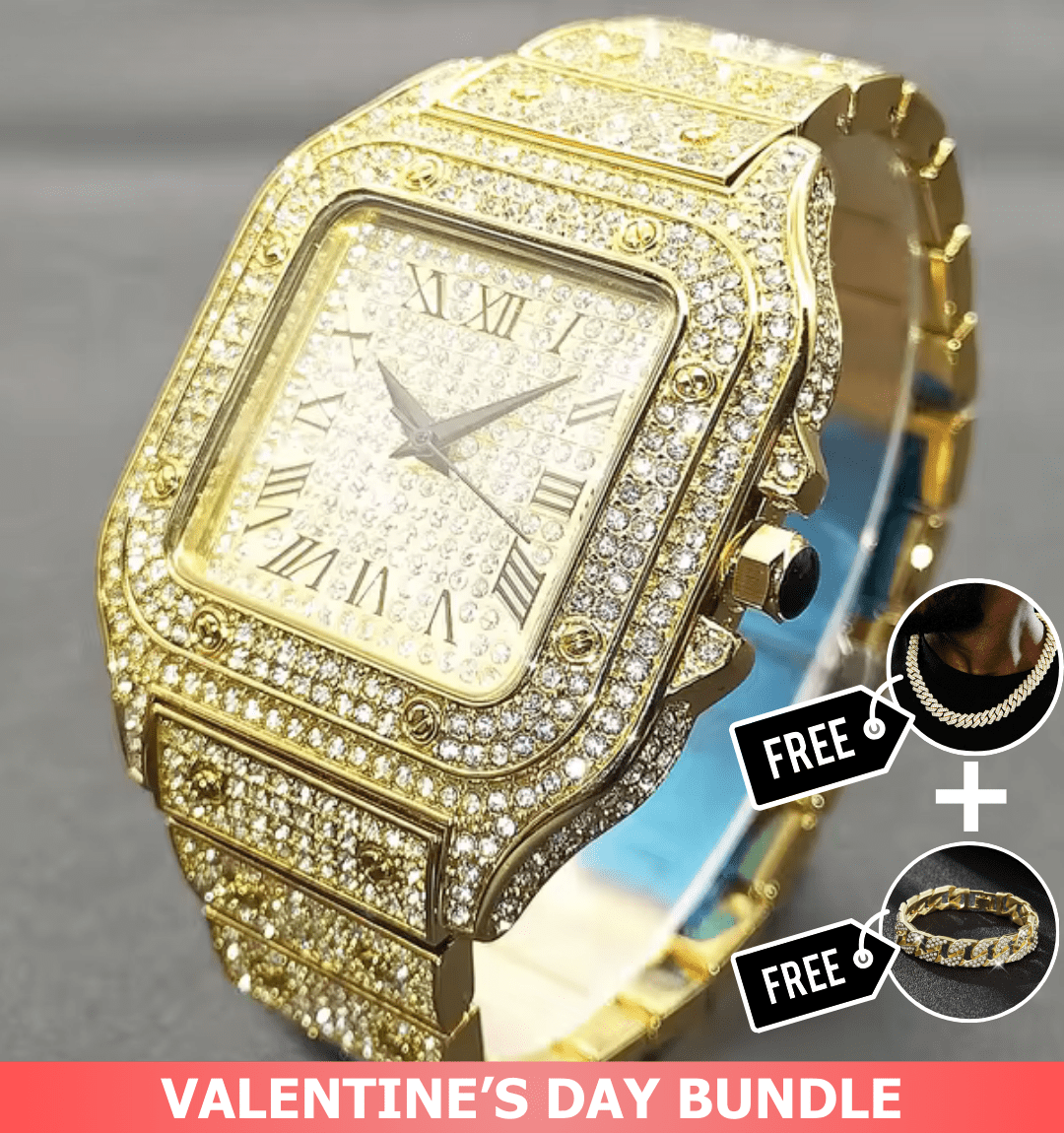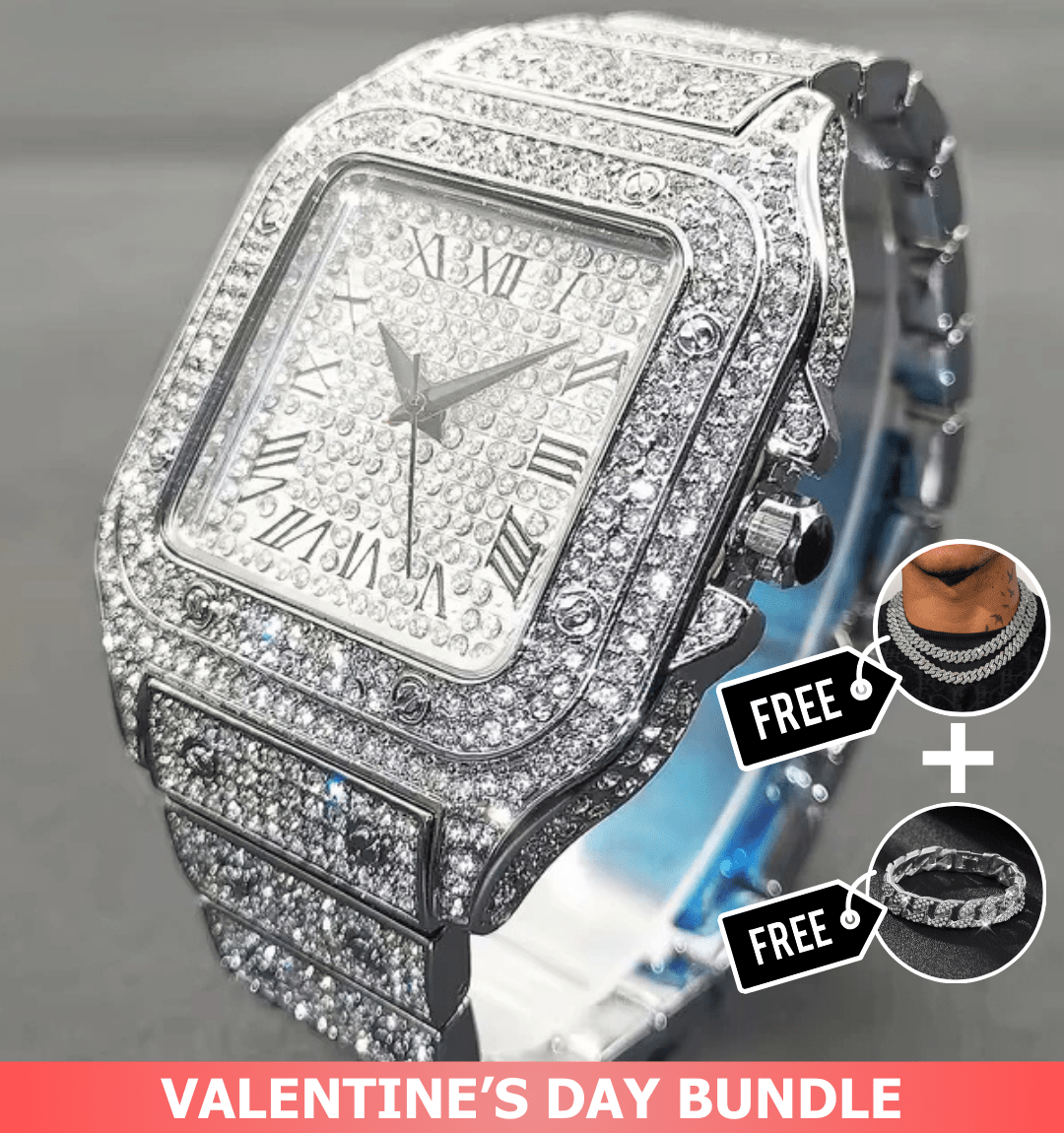 This watch is encrusted with premium moissanite stones. Each stone is meticulously set to ensure maximum sparkle and elegance, offering a watch that shines brighter and more colorful than regular diamonds.