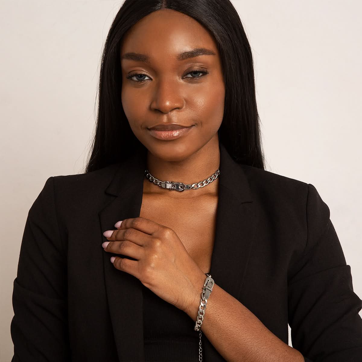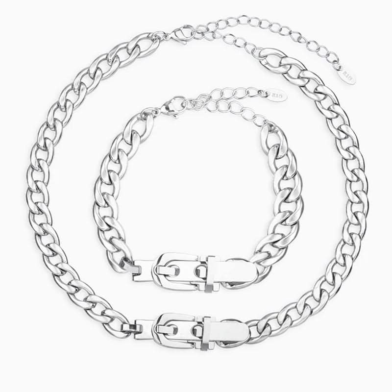 Pairing sleek style with a trendy edge, the Modern Buckle Jewelry Set is designed to elevate any look and adjustable for a personalized fit. Crafted from stainless steel, this choker and bracelet set has maximum durability, is comfortable to wear, and does not tarnish! Now available exclusively in gold and silver, this set is sure to have you standing out!