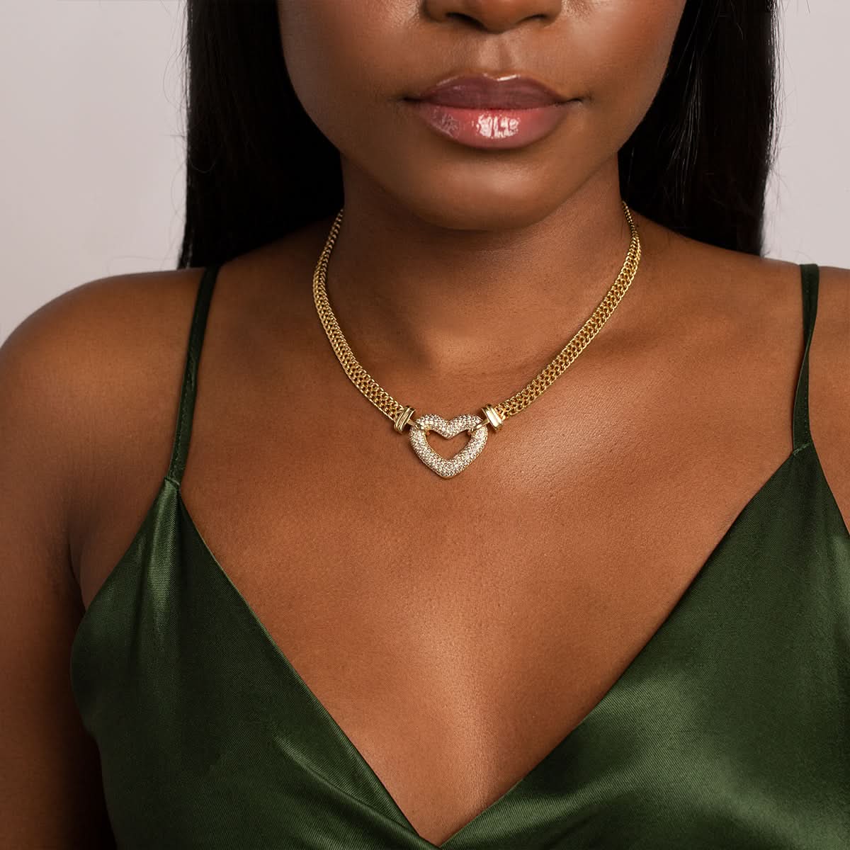 It's double the love with Paris Heart Pendant Jewelry Set. Pair the stylish choker necklace with the identical bracelet for a look that can't go wrong! This set offers a breath-taking appearance that is certain to draw attention. Now available in two colors, gold and silver. The heart pendant sparkles like the stars in the sky at dusk.