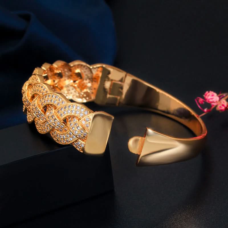 Take your look to the next level with the Sparkling Intertwined Jewelry Set. Adorned with glamorous cz diamonds, the bangle and ring are intertwined to create a chic style that’s versatile enough to wear during the day or night. Now available in gold, silver and rose gold. Add this set to any outfit and you’ll be sure to stand out amongst any crowd.